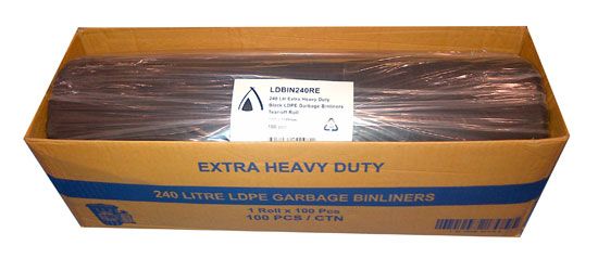 Garbage Bag 240L 1140 x 1450mm Black XHD Roll (100)