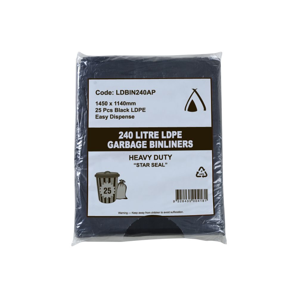 Garbage Bag 240L 1140 x 1450mm Black MD 4x25