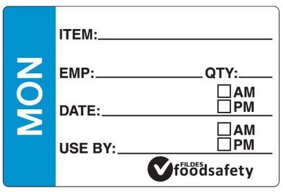 Removable prep day of the week stickers. Ideal where all times, dates etc. are required. 49 x 75 mm. 250 / Roll